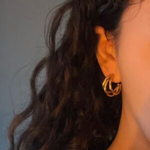 Boucles d’oreilles ANA, des puces d’oreilles élégantes et raffinées, composées de deux anneaux dorés entrelacés qui créent un mouvement délicat. Leur design intemporel et chic en fait un accessoire parfait pour toutes les occasions.